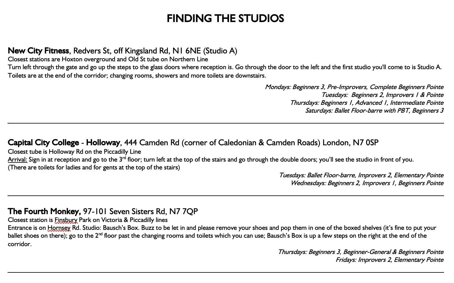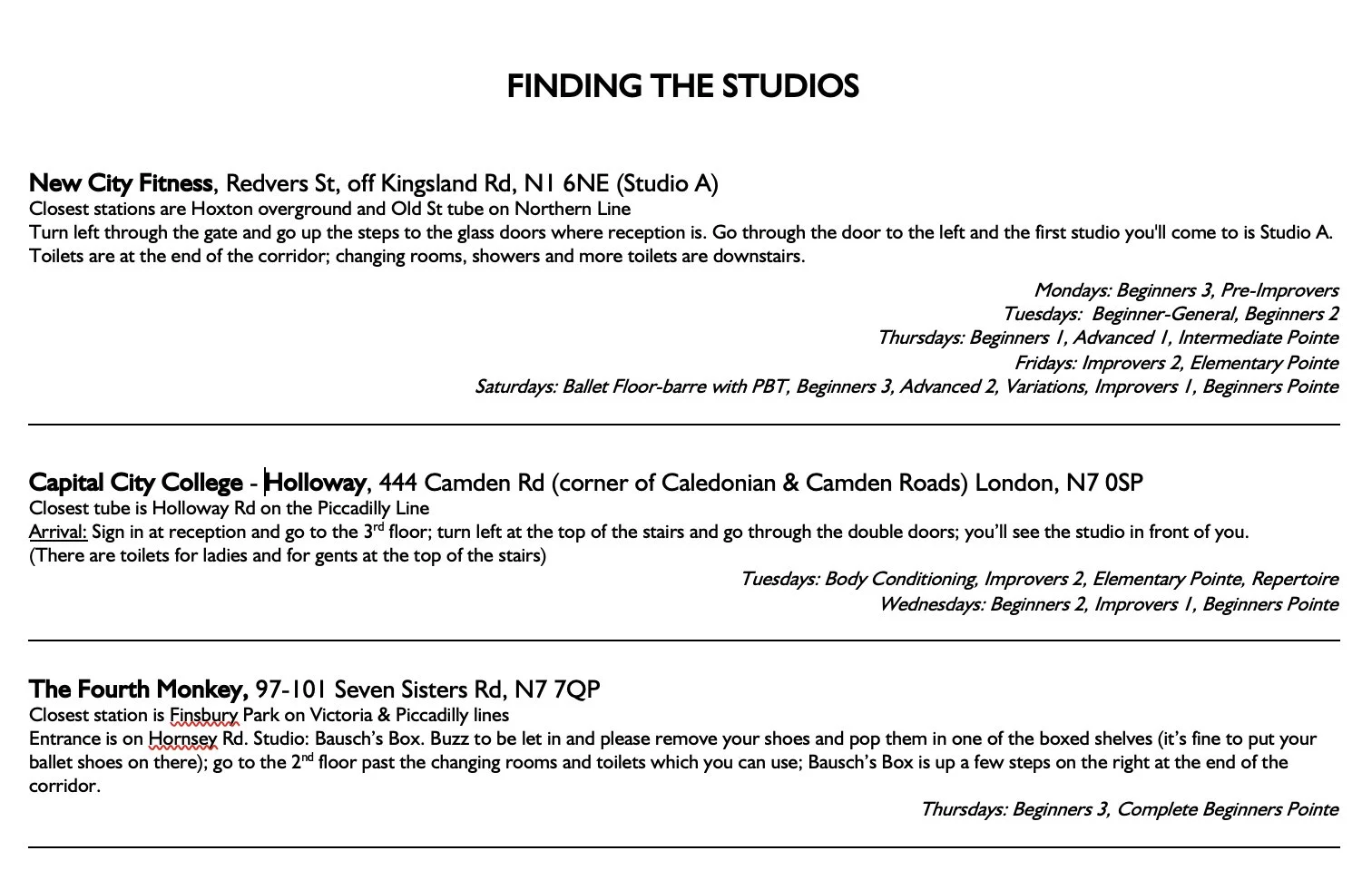 Holiday Intensives