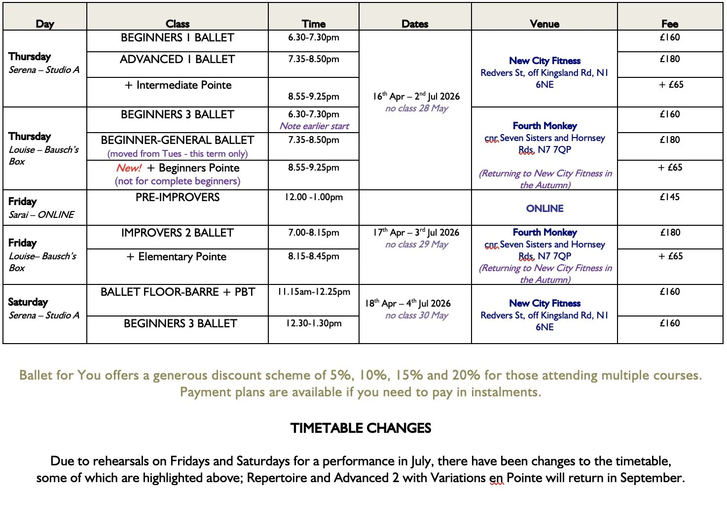 Timetable